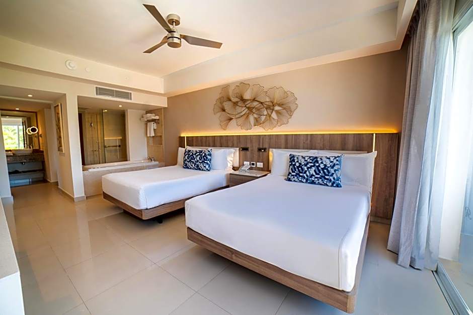 -Exclusive DreamBed with High thread count sheets -Royalton Signature rain shower -USB charging stations -Free high speed WI-FI resort wide for all your devices -In-room electronic safe -Satellite television including specialty channels -Stocked Mini-bar -24h Room Service -Each room features a balcony or terrace -Plus other amenities like iron and board, hair dryer, etc (coffee maker under request) -A/C with individual thermostat and ceiling fan